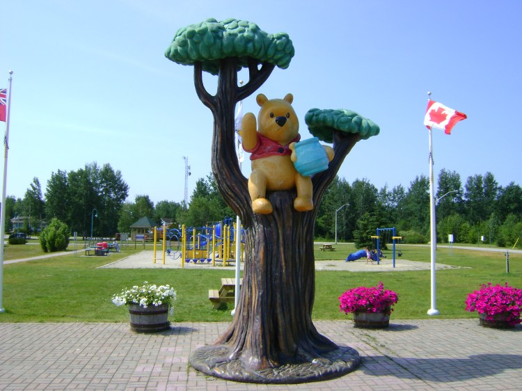 While on our yearly vacation through North-Western Ontario we decided to stop for the night in the small town of White River, which is located at the junction of Highways 17 and 631, mid-way between Sault St. Marie and Thunder Bay. We had stopped there before and I was always intrigued by the twenty-five foot Winnie-the-Pooh statue on the south side of the Trans-Canada Highway. Our previous visits had always been rushed, but this time I decided to investigate. We have several Winnie-the-Pooh collectors who visit Gypsy Wind Collectibles, Antiques & Vintage in Mississauga and I wanted some great photos to bring back.
